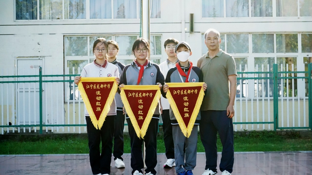 上周获得流动红旗的班级是:七4班 程顺平 八3班 王慧 九2班 康倩倩