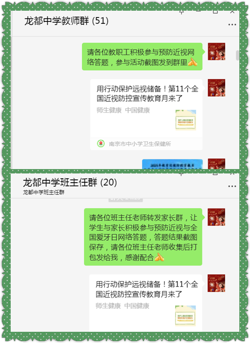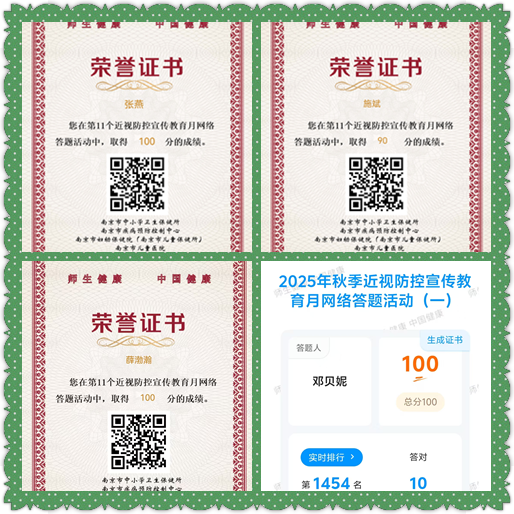二、组织师生参加近视防控网络答题活动,引导孩子们关注眼健康,营造良好的用眼环境。并积极做好家长宣传教育工作,通过微信群向家长宣传保护视力的重要性和方法,让家长能为学生创造良好的学习条件。
